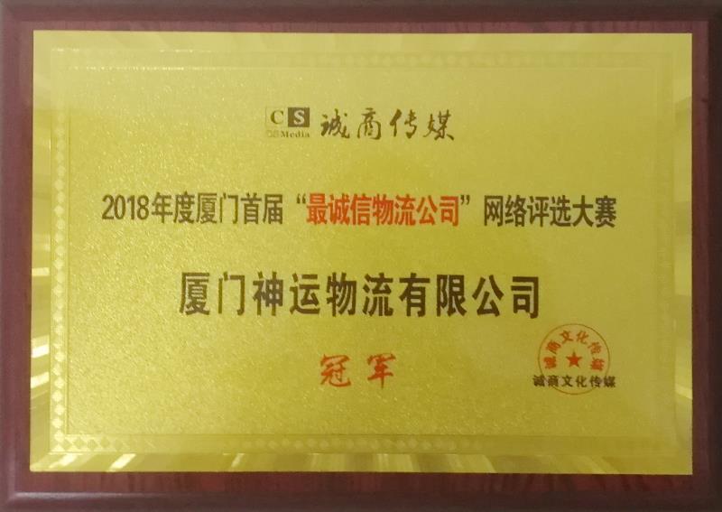 熱烈祝賀神運物流榮獲“2018年度廈門首屆最誠信物流公司網(wǎng)評大賽冠軍”